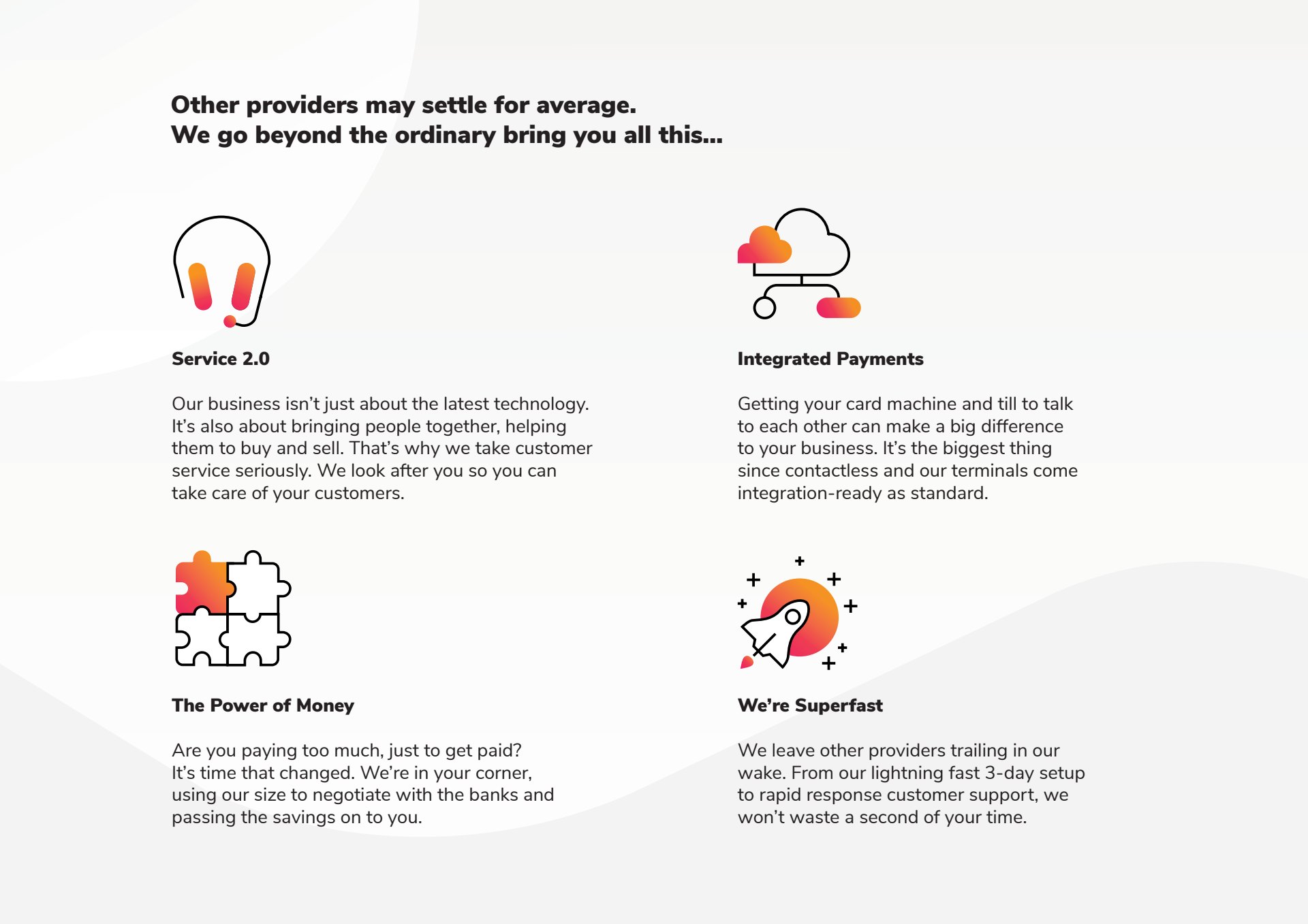 I worked with fin-tech company Paymentsense to overhaul their brand and create a TOV more fitting to a challenger brand taking on the big banks. This involved everything from a new website to employee and partner branding.