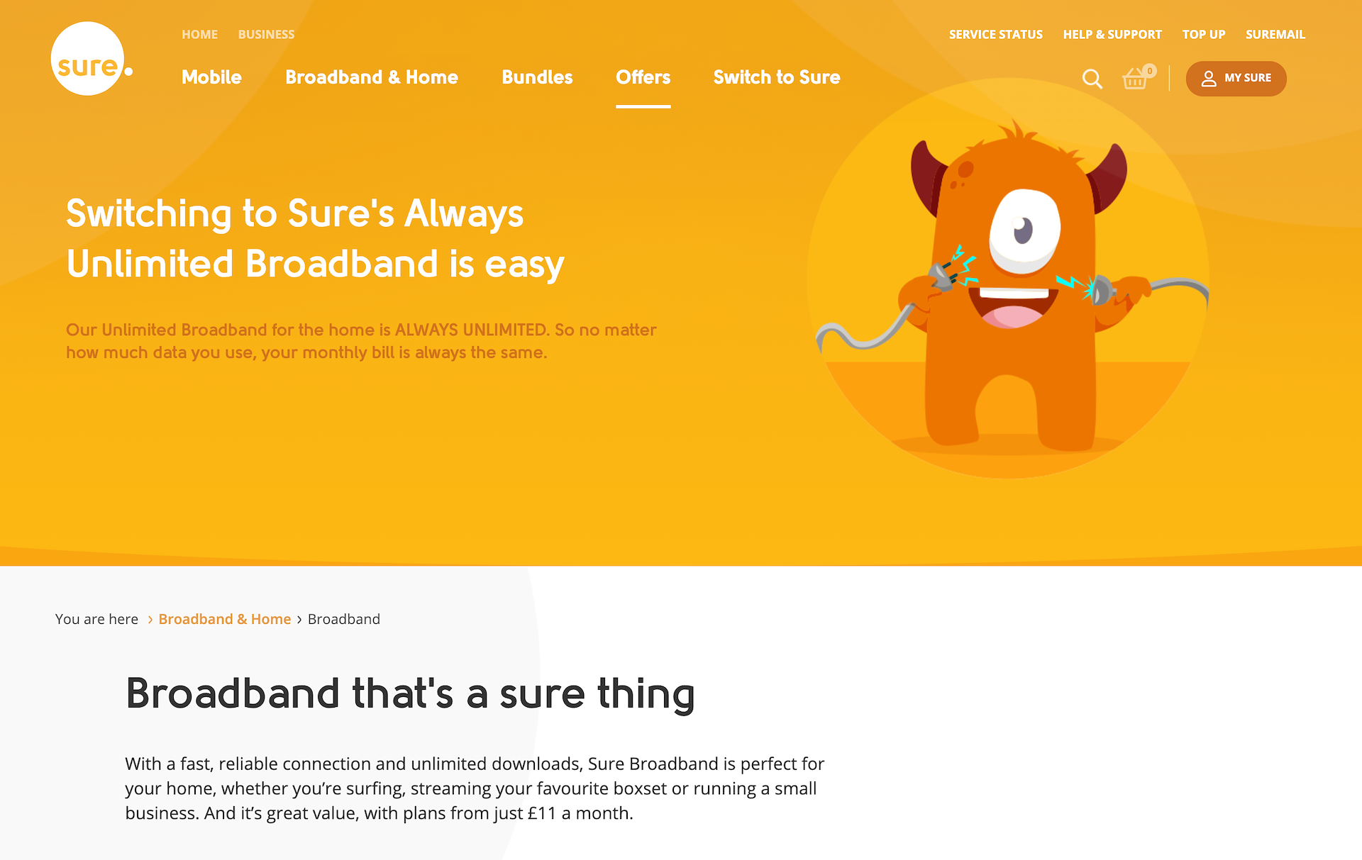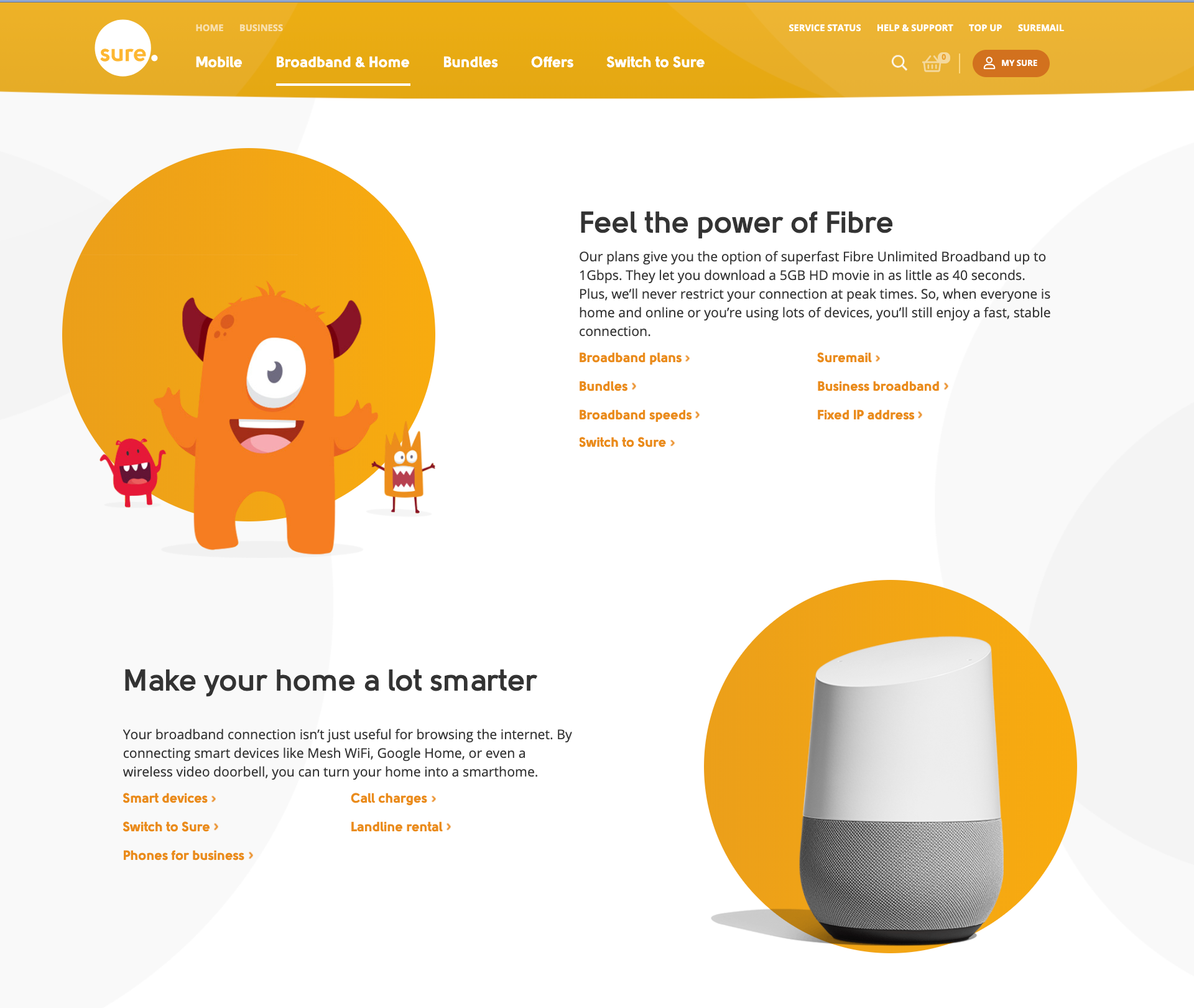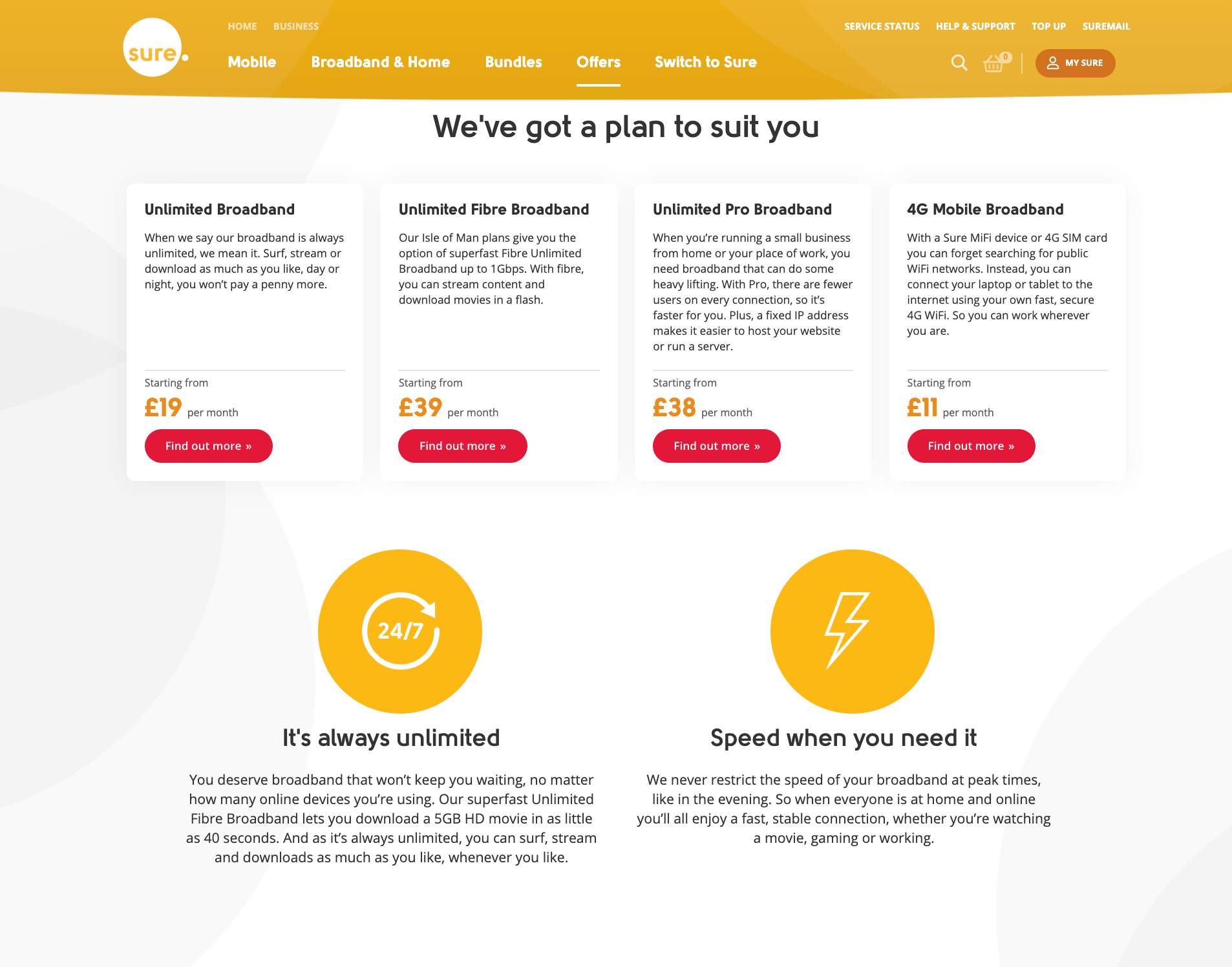 I created a new website for Sure Phone and Broadband, covering both their B2C and B2B offerings. This involved working with the site UX to create a new TOV across dozens of pages.