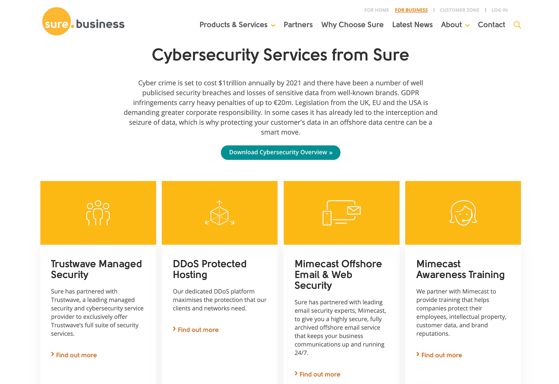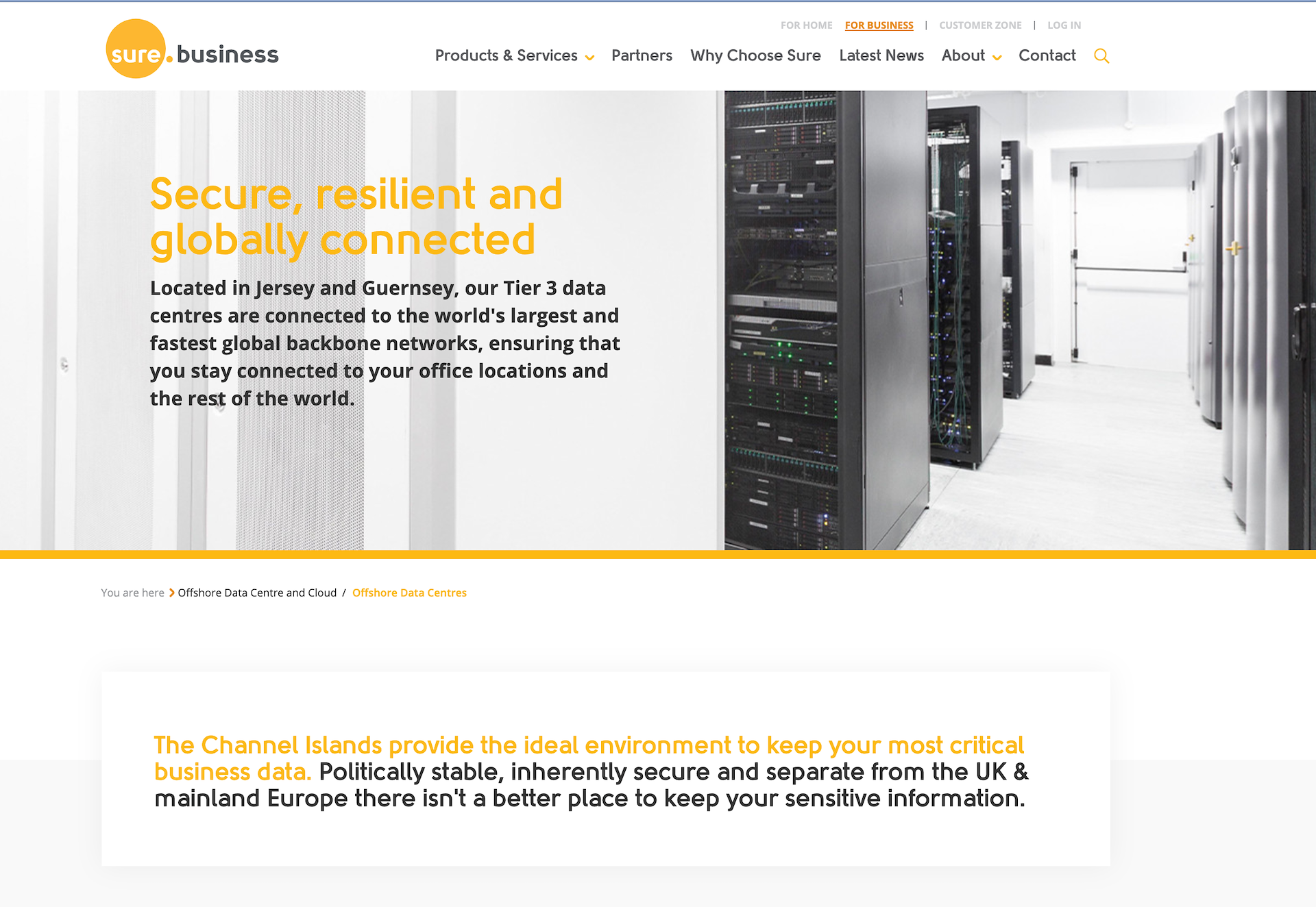 Sure’s B2B site was a different proposition, with highly technical information which needed to reassure a professional IT audience that the provider was a safe place for data and had innovative solutions.