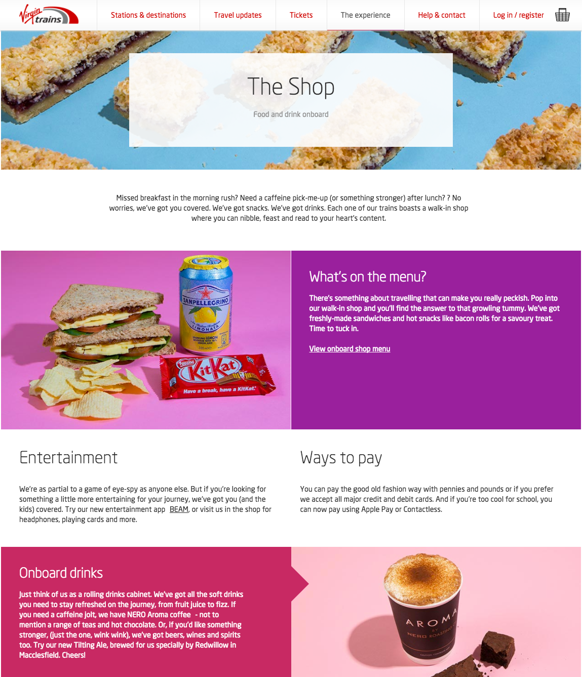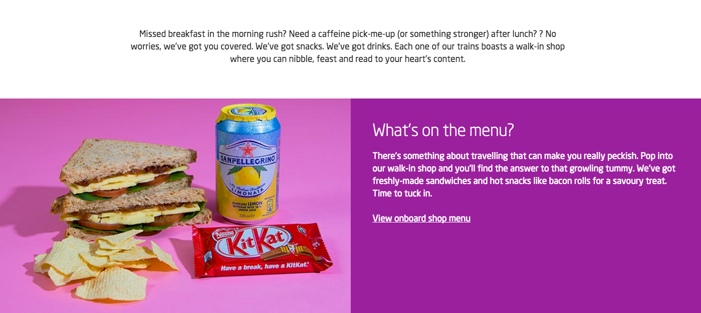 Giving Virgin Trains online tone of voice a jolt of personality – from first class to their onboard shop and entertainment. I wrote and oversaw copy for the site, from refreshed pages to new UX builds.